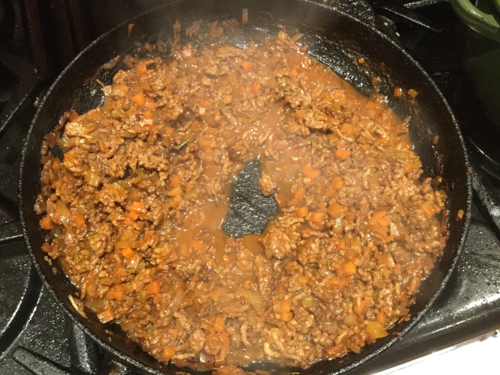 シェパーズパイのこつはお肉のとろとろに成った煮詰めた液体です。材料のワインとストックが決めてないのですが煮詰めると濃厚な味を伝えるから、あれば使ったほうがいいです。