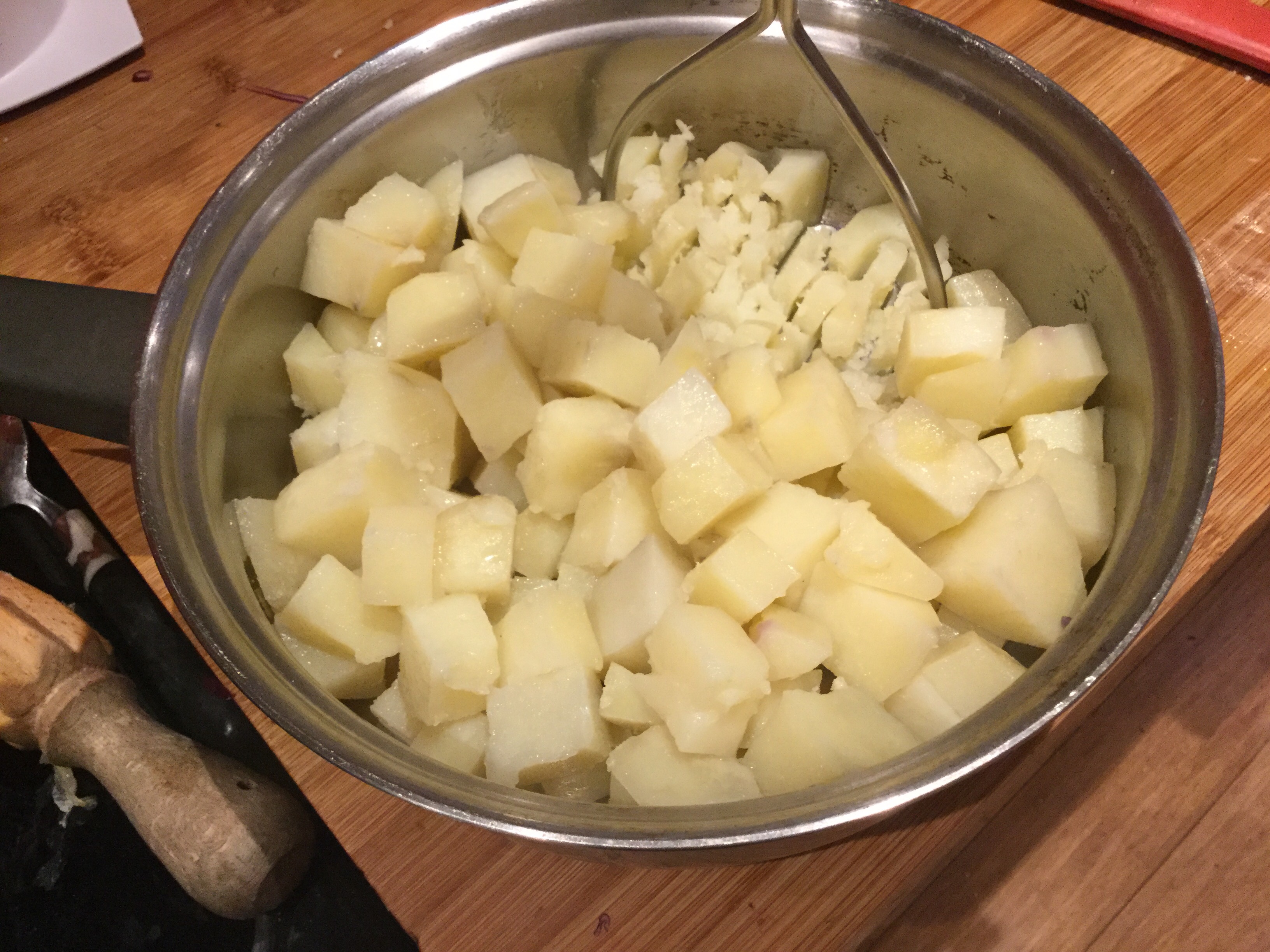 - ざるに取って水気を切り、ボウルか鍋に入れてマッシュします。まだ温かいうちにバターを加え、混ぜます。塩で味をととのえます。