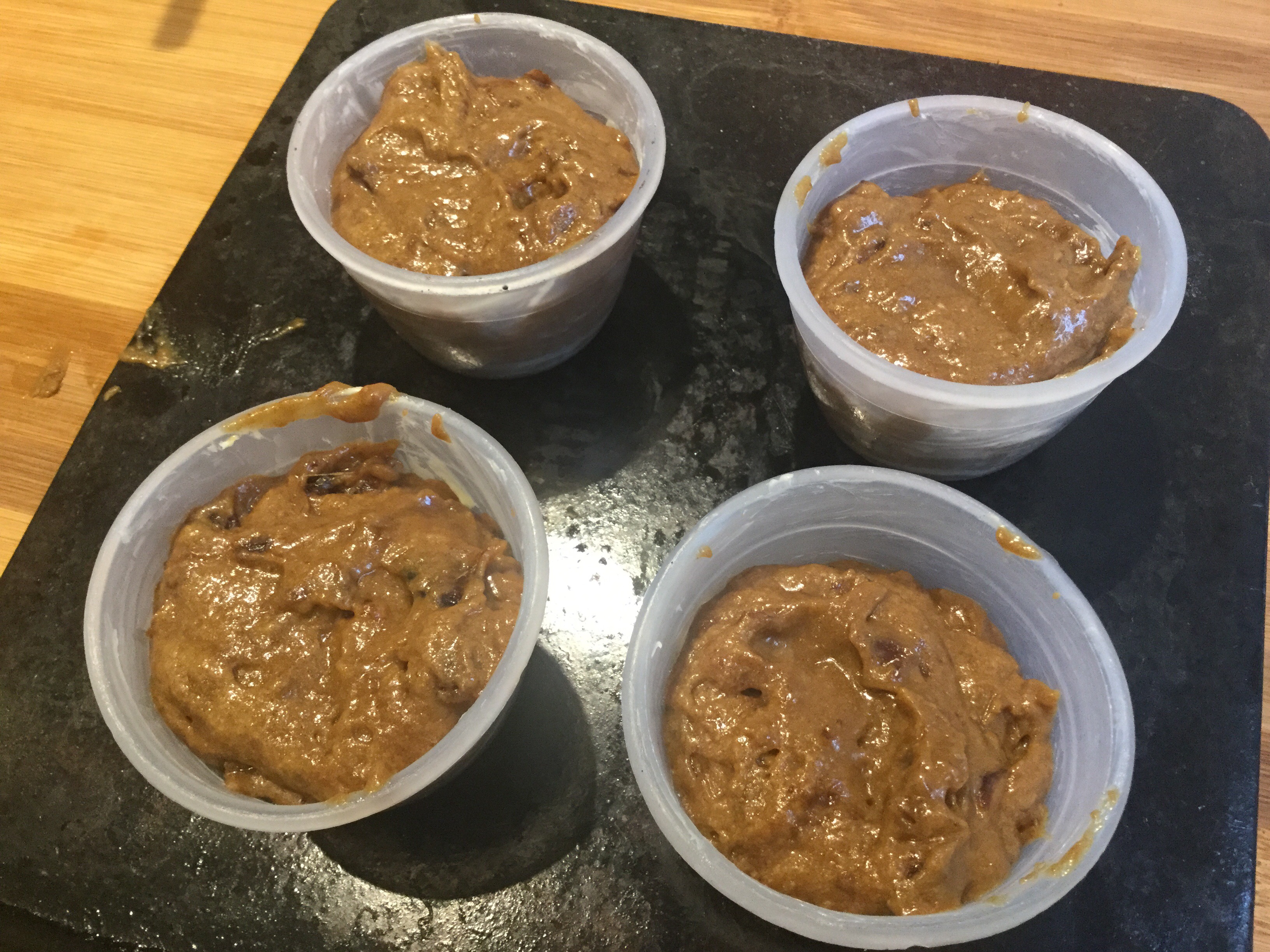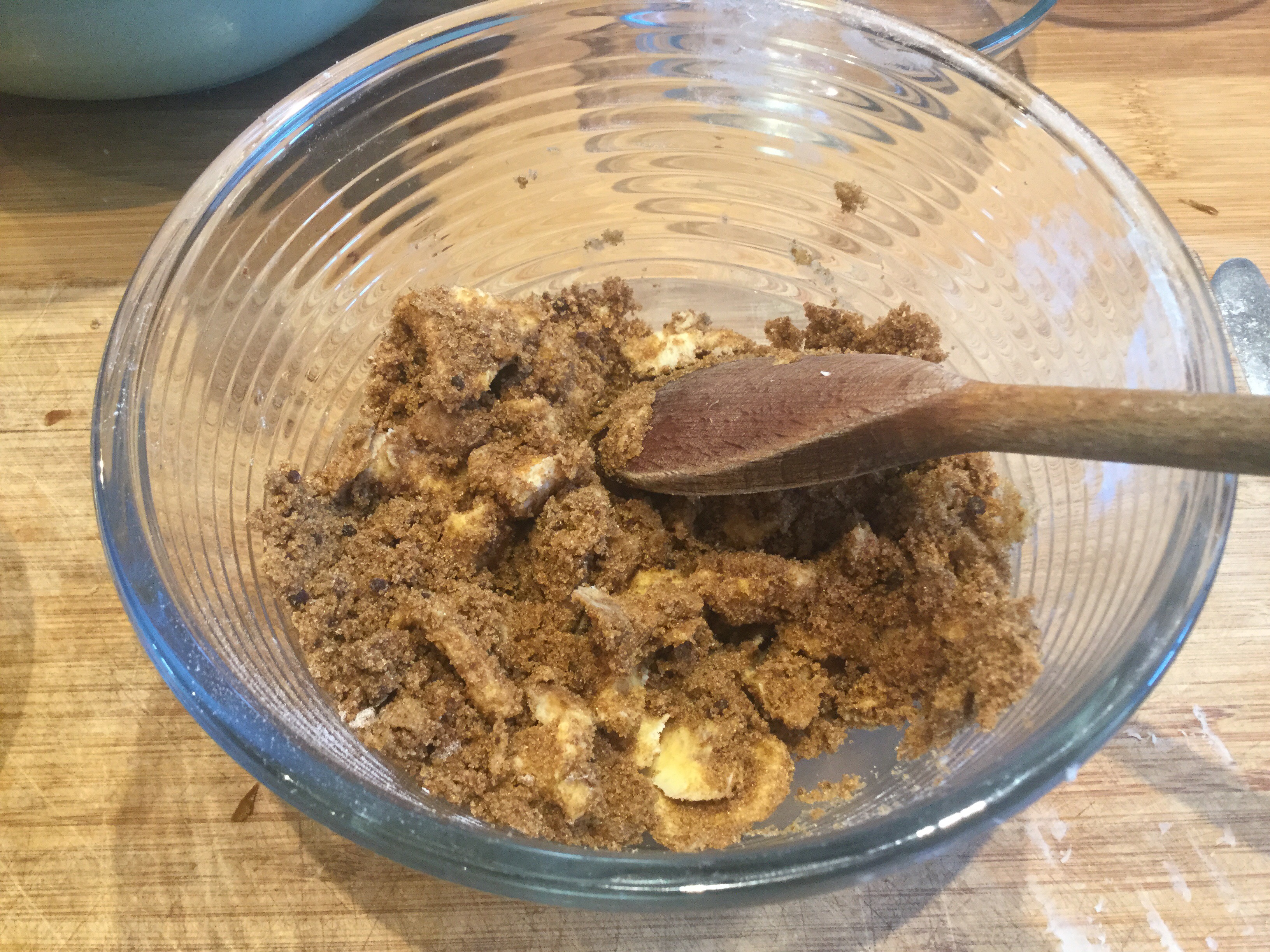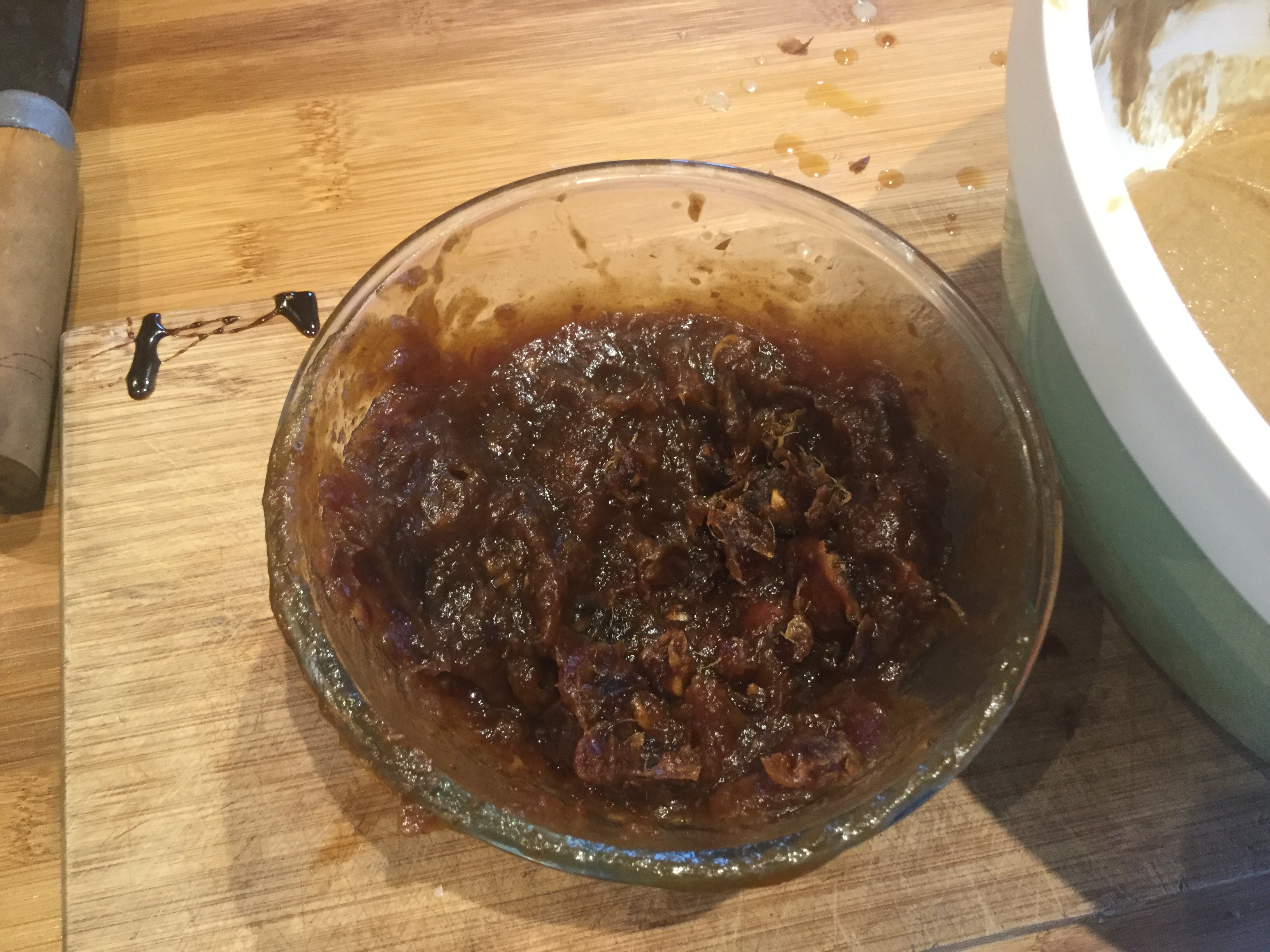 - デーツを生地に加え、混ぜる。