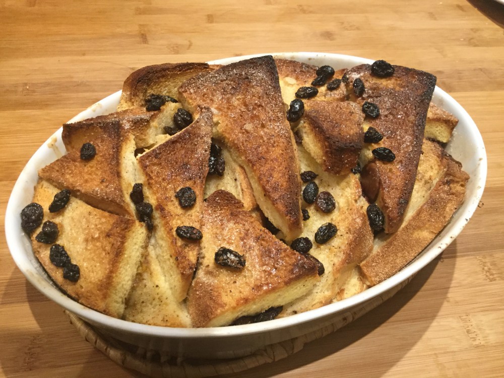 このレシピは基本的ですがさまざまなバリエーションもあります。例えば、パンの代わりにブリオッシュを使ったり、パンにジャムを塗ったり、干しぶどうの代わりにチョコレートチップをかけたり、カスタード液にリキュールを加えたバリエーションもできます。家庭料理なので自由に選べられます。