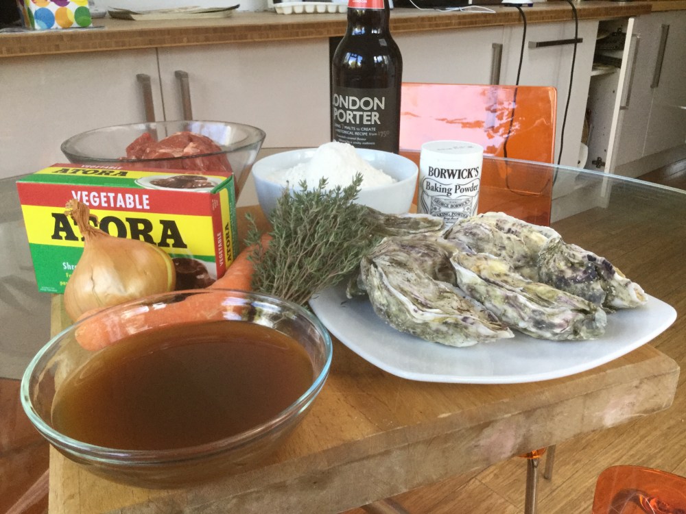 ステーキとカキプディングはイギリスのメインディッシュの蒸したスエトプディングの一類です。ペーストリーの皮はスエト「suet」という牛の脂肪と小麦粉で作ります。19世紀にイギリスのカキが環境汚染の影響で不意に珍しくなったのでこのプディングも珍しくなりました。その後にステーキと腎臓プディングのバリエーションが広がりました。