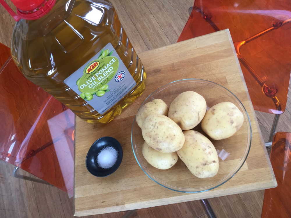 かりかりした表面、ふわふわした中身のチップスのためには適当なジャガイモの種類を使った方がいいです。イギリスなら、マリス・パイパー「Maris Piper」の方がいいです。(キング・エドワード「King Edward」やデジレ「desiree」でも可。)日本のジャガイモの種類は詳しくないですがきっと男爵の方がいいです。