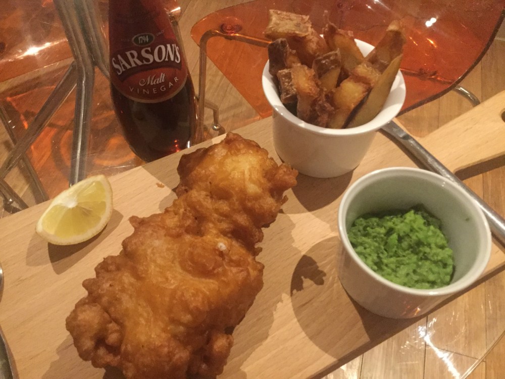 実際にはフィッシュ&チップスは成分がミツあります。バッターをつけて揚げた白身の魚とポテトフライは当たり前ですがマッシーピーズというエンド豆料理も普通です。