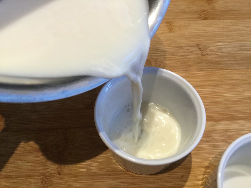- 凝固する前に、もうすぐジャンケットを器に注ぐ。