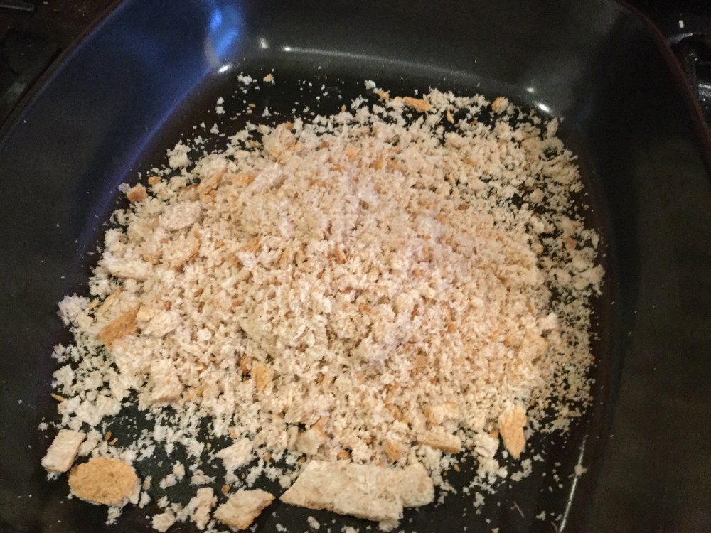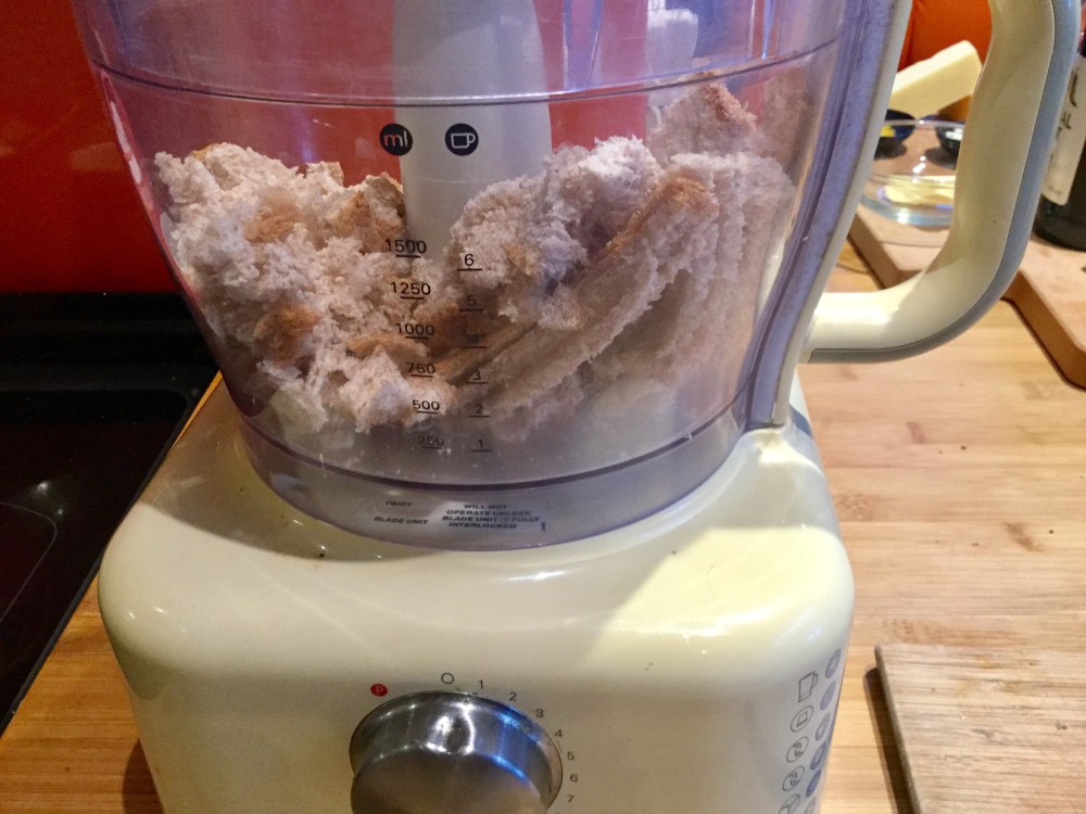 - パンをパン粉にする。(私はパンをスライスしてからミキサーでボロボロにした。)