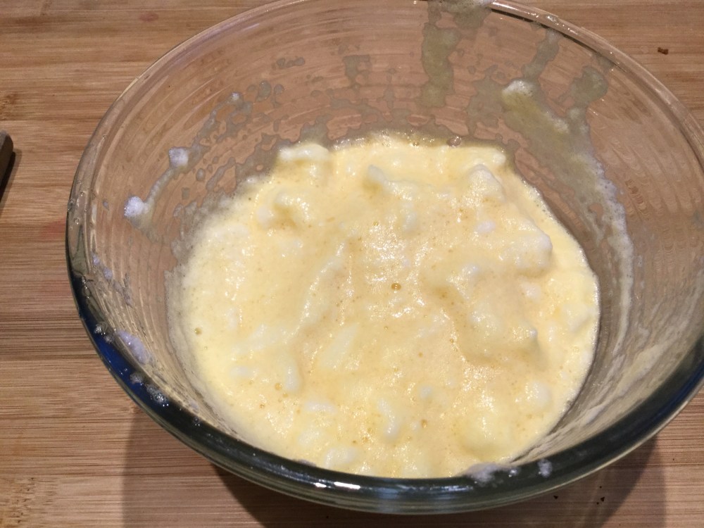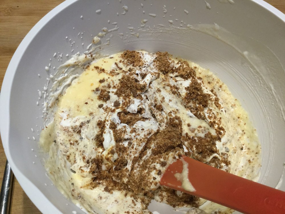 - 4と8を9に加えて、柔らかくに混ぜる。