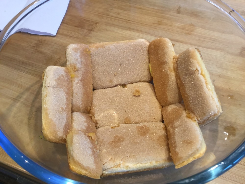 イギリスではトライフルのためのスポンジケーキはスーパーで買えます。そのからりに手作りのかパン屋さんのを使えます。