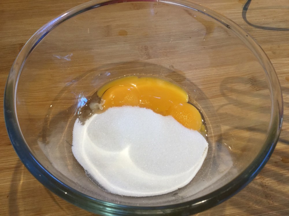 - 1層のオレンジのおろした皮を生クリームに入れて、鍋に生クリームを温める。