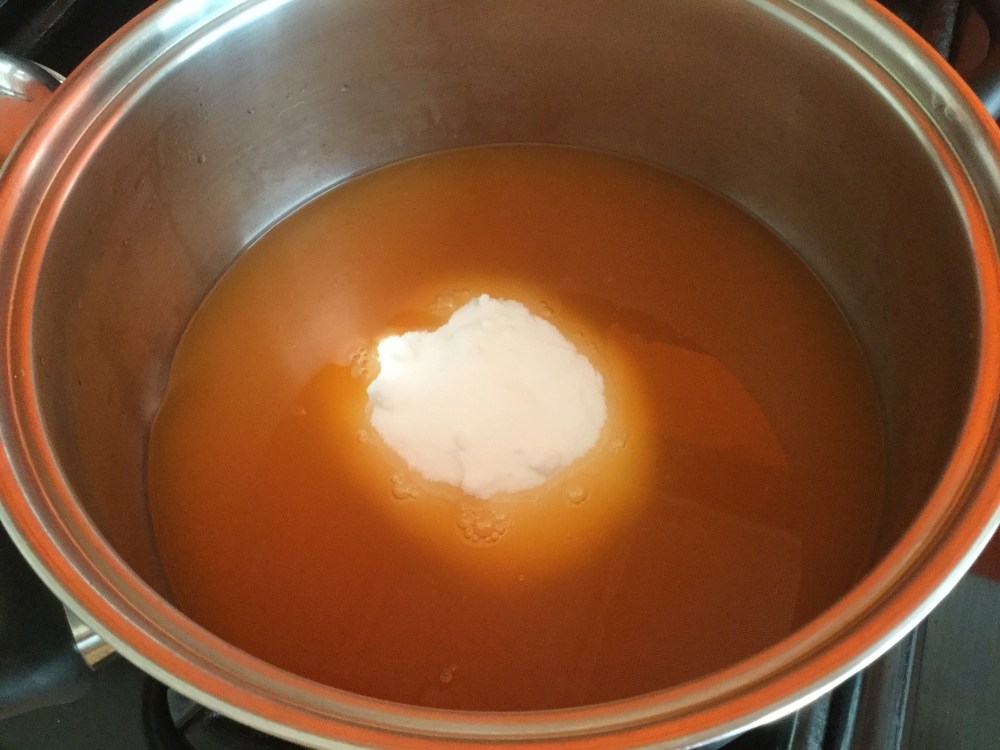 - 鍋に入れ、砂糖を加えて、砂糖が溶けるまで煮る。