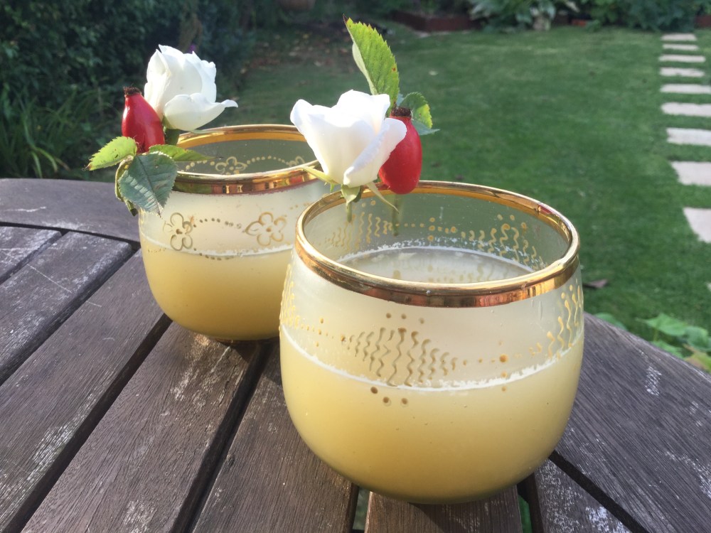 アイスクリームかパンケーキにかけたり、冬に湯に入れて飲んだりします。私は下の写真のようにラムと料理用リンゴのジュースを加えて、カクテルを作るとです。ローズヒップシロップの味が強くないので小味の料理に似合うのです。