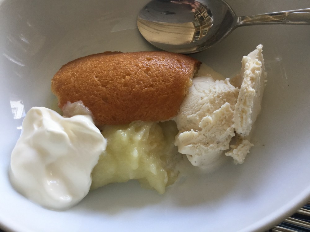 生クリームかカスタードを添えるのがイギリスの決まりです。