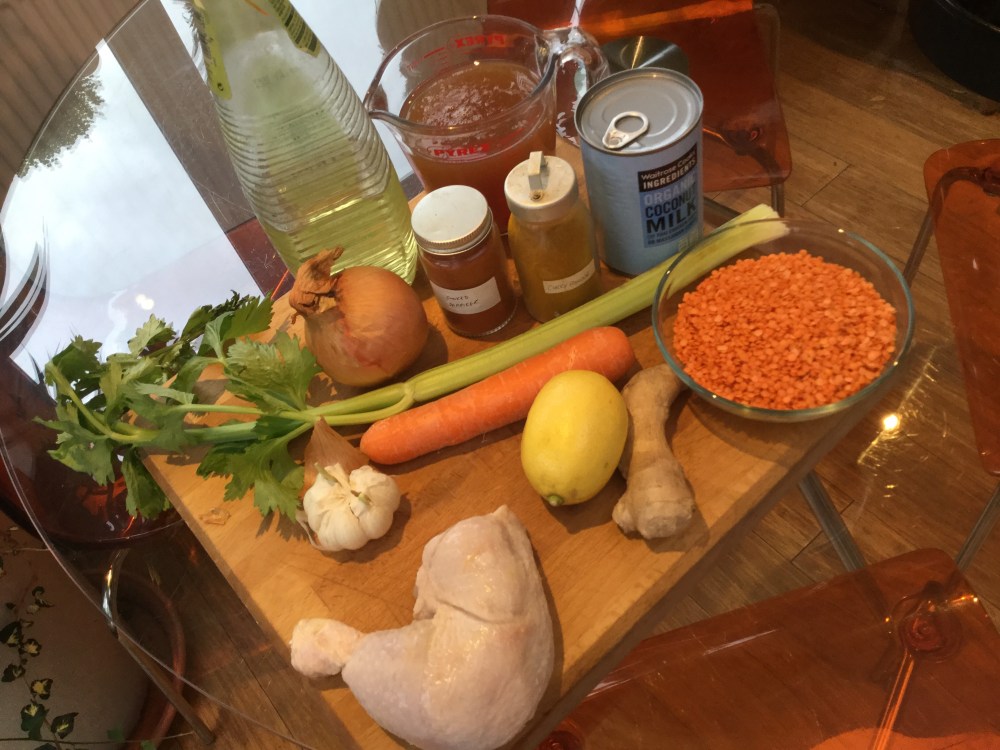 - 赤レンズ豆を入れて沸騰させてから弱火に30-40分とろとろ煮える。(生鳥肉を使ったら、鳥肉も赤レンズ豆と一緒加える。)