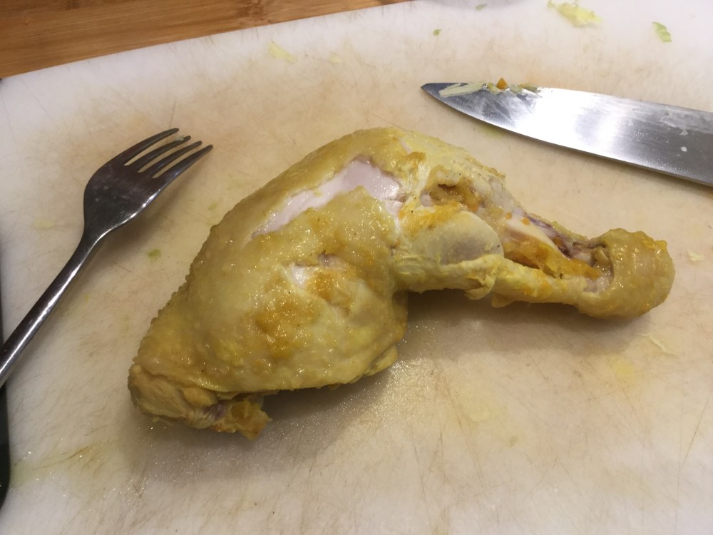 - 鳥肉 お好み分量。私はモモ二つを使った。なしでもすむ。