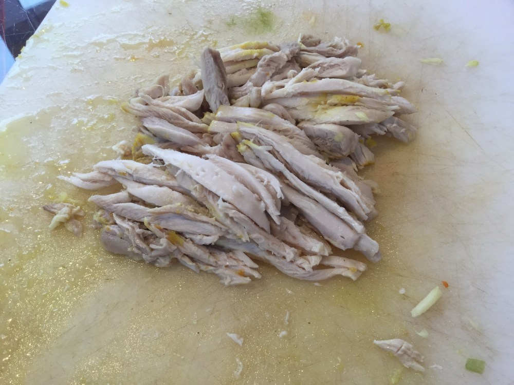 - 鳥肉ができたら、刻んで2の取り分けた野菜と一緒、鍋に戻す。(焼き鳥肉を使ったら、今加える。)